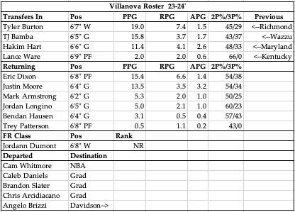 The jury is still out on Kyle Neptune after a pretty disappointing year 1 in the post-Jay Wright era, but it was riddled with injury early and showed promise once the full team was back, as they finished 7-3 with wins over Xavier and Creighton. Neptune has now gone out and got a 3-headed monster in the transfer portal with Tyler Burton (Richmond), TJ Bamba (Wazzu) and Hakim Hart (Maryland) who all will come right in and start. You pair those 3 with Eric Dixon and a healthy Justin Moore who are both back and they have one of the best starting 5’s in the Nation. They also beefed up their bench by getting Lance Ware (Kentucky) to go with Trey Patterson off the bench inside, and both of those guys should have a role behind Dixon and Burton. Lastly in the backcourt they have top-50 recruits from the past couple of years in Mark Armstrong and Jordan Longino both back in reserve roles, so the talent is off the charts at Villanova right now. We are going to find out very quickly if Neptune has what it takes, as this year’s team is significantly more talented than last season’s, and has a good amount of veterans and holdovers from the Wright era to go with the new transfers. The culture should still be there, and with guys like Dixon and Moore getting to pair up with elite scorers like Bamba and Burton, the ceiling should be Conference champs and a deep run in March. If you’re trying to poke holes here it has to be with Neptune and just how bad they looked in year 1. Losing to Portland and Temple is indefensible, but not having Whitmore and Moore in those games hurt a ton and they were playing a lot of young guys at the time. I do think with this much talent it won’t even take that great of a coaching job, it’s all about these veteran, talented guys just playing good basketball. He had 8 years under Wright as an assistant, so surely he picked up a few things from one of the greatest basketball minds of this era right? We’re about to find out, but I’m buying Nova and would not be shocked to see them in the Elite 8 and/or Final 4.