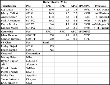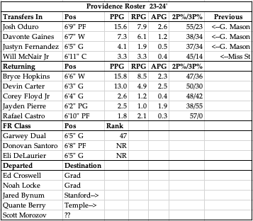 Another 2nd year HC who struggled in year 1 is Thad Matta, and while he is much more experienced the College landscape is much different than it was in his heyday. A sign of that comes in the form of almost his entire roster leaving the program, with only 2 guys returning that played anything close to meaningful minutes a year ago, so Matta is clearly struggling to establish some stability in this new environment. However, he was able to use the transfer portal to his advantage as well, bringing in 5 guys who averaged double digit scoring a year ago to try and replace all of that production lost. The two leaders of the group are DJ Davis (UC Irvine) and Jahmyl Telfort (N’Eastern) who both averaged 15+ ppg and should be the primary weapons for Matta this season. Landon Moore (St. Francis) was a late addition but could serve as the backup PG to Posh Alexander (St. John’s) who is a vet that has averaged double digit scoring each of his 3 years in college along with nearly 5 apg. Andre Screen (Bucknell) figures to be the starting 5 and that gives them a solid looking starting 5 on paper. Depth will be an issue, but from what we saw a year ago the bigger issue is just how efficiently this eclectic group can play offensively. Defense was a strength a year ago, and I would imagine that continues given how that usually comes down to coaching. Similar to Seton Hall I don’t see Bulter in the tourney, and they likely are going to struggle through the top-6 or 7 teams in this Conference, but they certainly should be competitive with the top end talent they have.