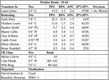 We’re not going to beat around the bush here, the Boilermakers, and Matt Painter especially, need to get the March Madness monkey off their back. Painter has been at the helm for 18 seasons now, with 14 tourney bids, 6 Sweet 16 appearances, and just once has made it beyond that to the Elite 8, with no Final 4’s. With returning NPOY Zach Edey alongside the exact same starting group that won the Big Ten and was a 1 seed in the tournament all back, that remains baseline for expectations. They have to have their eyes set on a repeat, and then March success. So, how do they do that? First they have to be better taking care of the basketball, which starts with growth from Braden Smith and Fletcher Loyer in the backcourt. They were thrown to the fire as true FR and at times it was ugly, no more so than the loss to FDU in which they accounted for 10 turnovers. They also have to improve their outside shooting, as they shot a putrid 32% a season ago, good for 276th in the Nation. Cam Heide and Lance Jones (SIU) figure to be key candidates to help contribute to that as fresh blood, but some returning guys like Loyer and Ethan Morton could improve as well. Morton shot 44% his SO year, but just 28% a year ago. Another sneaky addition is FR Myles Colvin, who’s at his best when out in transition, and will bring much needed bounce and athleticism to this Purdue program. He already has elite ability when attacking the basket, and shows the creativity and control to glide past defenders and finish above the rim with ease, so he could add a different skillset to this group. Some people will cry out for a change in style or approach, declaring this style of play as one you can’t win in the tournament with. I think that’s short-sighted, as many said the same thing about Tony Bennett and Virginia, until they did it. I see this Painter, old-school, back to the basket big man style in the same vein. Yes it’s more difficult, but to steal a line from Painter himself, if they were just consistently better at what they do then they would find more success. Don’t turn it over 16 times and miss 21 threes and you probably don’t lose to FDU. That will undoubtedly be the message all season long, as these Boilers try to prove the big man ain’t dead yet.