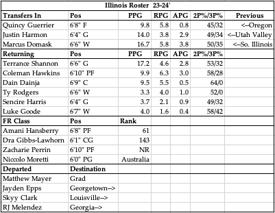 Underwood has so much to work with here with this roster he has built. Shannon Jr and Hawkins back as the centerpieces gives them veteran firepower, but the transfers are what look to push them into the top-15 or higher. I look for them to go small more often than not, with Hawkins at the 5 and Guerrier and Domask alongside. That starting lineup would give them 4 very good outside shooters, with Harris there to anchor things at the PG. Maybe that’s Harmon, who knows, but I really don’t think they’ll desperately need Harmon to create with the starting group. He’s a perfect spark plug kind of guy to come off the bench. The more I chew on this roster the more I love it, as they have Dainja there as well if they need to go big at times. There’s honestly no excuse why Underwood can’t get this talented group into the 2nd weekend in March and be contending for a Big Ten Championship. Anything less than that is an abject failure for this team, and frankly I won’t be shocked if that is exactly what happens. He’s had more talented teams, see Ayo and Kofi’s years. What typically happens with an Underwood coached team is lazy defensive stretches and a chaotic offense that relies on a guy like Shannon to create everything while the other 4 stand and watch. Hopefully, for Underwood’s sake, he can get some sort of offensive scheme developed for this group. He has shooters, he has playmakers, and even has a post presence with Dainja. Again, I can’t stress enough, no excuses why this team isn’t a Sweet 16 team at minimum and inside the top 10 or 15 all season long.
