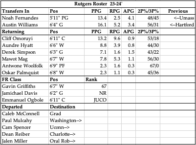 It was an unfortunate fall for Rutgers last season after they started 16-7, including a win @ Purdue, and then Mawot Mag went down with an injury. They finished the season 3-7 and missed the dance, and now have lost 3 core members of that group. They do get back Omoruyi, Hyatt, Simpson and Mag who all were key parts to last season and brought in a couple of transfers to try and fill the gaps. Simpson is notable as he’s a young scorer that is poised to take a jump after showing flashes of a high ceiling last year. Fernandes should come right in and be the starting PG, and his shooting ability is going to be critical for a team that was atrocious offensively last year. Williams same idea, he will hopefully provide some scoring as he’ll battle Hyatt for a starting spot. The defense should remain at an elite level, with Omoruyi as an elite shot blocker inside allowing these athletic wings and guards to put a lot of pressure on opposing teams. This style that Pikiell has implemented has been essential in terms of the rise of the program, however it is also what limits the program’s ceiling at this point. Because he recruits strong, athletic guys who can excel defensively, they all enter the program with offensive limitations. He did finally land some shooters in Fernandes and this incoming FR Griffiths, who is a sniper at 6’7″ but he does have some athletic limitations so his ability to defend at the level required will be interesting to watch. They should be able to improve offensively, as the bar is pretty low after a season ranked 151st, but it’s certainly not going to be their strength. Under Piekell they’ve never been higher than 72nd. Their hard-nose defensive style will keep them competitive though, and they should grind out wins against quality opponents, especially at home. I would expect them to be right in the bubble mix and if they stay healthy they likely will get back to the dance.
