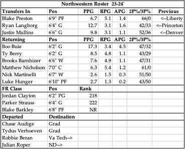 Chris Collins was on the hot seat a year ago and broke through, getting the Wildcats back to the dance and pulled off some huge wins, including one in the tourney. They bring back most of the core from that team this year, including one of the best guards in the Conference in Boo Buie. They did lose 2nd leading scorer Chase Audige, who is going to be tough to replace, but they did bring in some transfers in Langborg and Mullins who could step in and fill some of that void. The returners Berry and Barnhizer are also poised to take a step forward as well as scorers. Matthew Nicholson is back as the starting 5 and Preston should be a serviceable backup, so the talent is there for them to have another positive season. The thing that gives me confidence, beyond Buie, is that they won with defense a year ago and that is going to keep them competitive despite the loss of Audige. I think the transfers add a lot, and so long as they can be a top-25 defensive team they should be right there on the bubble fighting for a tourney bid again. Now, we said this last time Northwestern had a good season, and they flopped hard, so I’m not ruling that out for a program that has struggled to maintain momentum. Collins has bought himself some time, and another tourney run should lock him in for a few more years, especially if they knock off some big boys again. Ultimately, they’ll go as far as Buie can take them, so he will need to be as good as it gets in the Nation to get these Wildcats back dancing again.