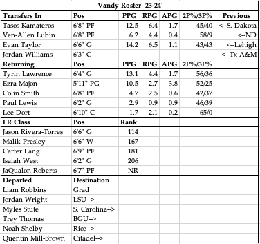 Jerry Stackhouse enters year 5 with no real results that he can hang his hat on thus far. He has lost a lot of his talent from last year’s group that was probably his best, so I see and pretty big step back happening. Lawrence and Majon being back is nice as they scored double figures, but there’s not a lot of proven depth and the lack of size in this Conference is going to be a huge problem. The recruiting class is going to need time to develop, which is surprising from a guy who has so many NBA ties, you would think he’d be landing big time recruits. And sure you could use the academic standards as an excuse, but schools like Virginia and Duke face the same issues and find a way. I don’t think Stackhouse is going to be here much longer, and this year could get ugly and be the nail in the coffin.