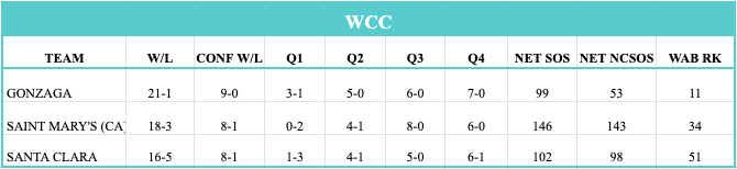 Just like we’ve become accustomed to seeing Gonzaga at the top of the WCC, it’s like an old familiar bedtime story to hear Randy Bennett and St. Mary’s are one step behind yet again. This year’s version of the Gaels are led by a dynamic trio of Paulas Marauskas, Mikey Lewis and Donovan Dent, all averaging at least 13 ppg. They aren’t quite as good as they’ve been in the past defensively, and that likely is why we see them struggling to pick up a Q1 win and lower in the NET. Right now their best win is a neutral site W over VA Tech which is right on the Q1/2 line. That certainly isn’t going to be enough in my estimation to get them into the dance, so grabbing a win over Gonzaga is going to be paramount if they want to get back to the dance. Fortunately the Zags are limping into the matchup on Saturday, so it’s as good a time as ever to pick them off and get that signature win to bring to the table on Selection Sunday. If they can’t go to Spokane and win for the 2nd year in a row then they’ll have to wait until the final game of the season when they host the Zags. A game that always carries massive stakes with even heightened importance? Sign me up.