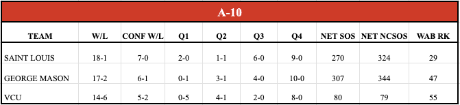 I look at VCU in a similar way as I do Utah St, just a program that can cycle through HC’s and always stay relevant in a way very few mid-major programs are able to do. After Ryan Odom took his talent to Virginia they simply went and Phil Martelli Jr after he took Bryant to the NCAA tourney. Year 1 got off to a rocky start, but it’s mostly due to the fact they went out and played a tough non-con schedule. Unfortunately they went 0-3 in Q1 chances and have followed that up in A-10 play by losing 2 of their very few Q1 chances in conference play. That puts them in a brutal situation, as a team with 0 Q1 wins is just simply not going to get in the dance. Now, they do have a neutral site win over VA Tech that could flip if the Hokies get inside the top-50, but if they want to have a legit shot at an at-large invite to the big show they need to find a way to win @ St. Louis as that’s their only Q1 shot left on the board. They don’t go to George Washington and Dayton is not going to qualify as Q1, so at this point that game on Feb 20 is looming large. Even still, in this year’s weak bubble they will remain in the conversation at 4-6 in Q1/2, especially since their non-con SOS is strong. You still would like to see them push it to .500 or better to build some confidence in an at-large bid. A 2 or 3 bid A-10 is on the table, but it is going to take near perfection from a couple of these teams, along with a continued weak bubble from the power conferences. Possible, but not all too probable.
