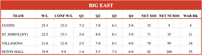 Nova narrowly escaped Xavier this week, going to OT in Cincy but ultimately pulling off a W. Then came the disappointing result, as they hosted UConn and were unable to hang with the Huskies, trailing for most of the game and losing by 10. That drops them to just 2-5 in Q1, and while the rest of the resumé is relatively clean outside of that (1 Q3 loss), they are sitting on just 1 top-50 win. The metrics like them and that is causing some to elevate them on the seed line, but I think they’re much closer to an 8 than they are a 6. Then you look at the remaining schedule and the only Q1 meat that’s left is a trip to St. John’s. If they enter the Big East tourney just 2-6 in Q1 they better hope they’ve cleaned up the rest of their games down the stretch, as they certainly can’t afford a bad loss. If they walk into Selection Sunday with Seton Hall being their 2nd best win, I could see them being much lower than people are expecting, as while the metrics do matter, the committee is going to be looking at teams like Texas A&M, Texas, UCF, Georgia and many others behind Nova who can sport a handful of wins better than Nova’s 2nd best win. We saw that matter with UConn being placed above Houston thanks to their top end wins, so while I don’t expect Nova to miss out, I think this could be a lot closer than people think. That could of course change if they go beat St. John’s on Saturday. They also better not look ahead to that though, as Butler is frisky. Have to stay focused and then be ready to strike.