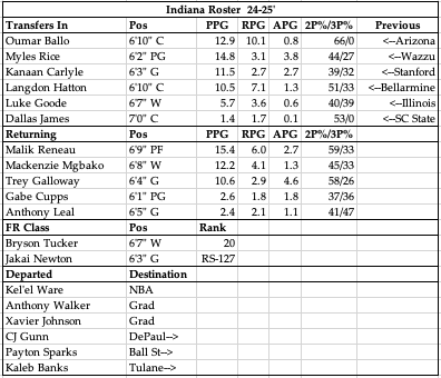 The influx of talent is obvious, but it’s a match made in heaven with Woodson, who has now built up a reputation as a HC that wants to get the ball inside and play from the paint offensively. The Hoosiers have ranked 6th and 4th the last two years in % of points coming from 2’s. You may think, well that’s likely because they couldn’t shoot from outside, and while that’s true of last year’s team, just 32% (255th), the 2023 team was the 4th ranked group inside and shot almost 37% from 3, good for a top-40 ranking. It’s obvious what his emphasis is, play inside out, and even allow guys to operate in the midrange and he’ll have the talent this year to dominate those areas once again. All of this means the inevitable high expectations that will be placed on this team are actually warranted this year, so the pressure is both on the players to perform and also Woodson to get them all to buy in and play hard consistently. That has been the bugaboo for this program during his time here, as the biggest criticism of his past teams would be not showing up night in and night out. See the sweep by lowly Penn St last year as prime examples. They should dominate the paint and the glass, and have the athletes to be a good defensive team, but a lot of that will come via consistent effort. If they don’t reach this level of success, that will almost assuredly be why. If everything comes together though this team has an Elite 8 to Final 4 run as its ceiling, and should be battling for a Big 10 championship down the stretch. Gear up Hoosier fans it’s going to be a fun one…or another massive disappointment that causes yet another HC firing. Either way, enjoy the ride.