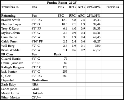 Purdue and Matt Painter finally got the March monkey off their backs last year, achieving the March success that has evaded them for decades. A repeat as Big Ten champs, the NPOY and a dominant run to the National Championship game undoubtedly brings a giant sigh of relief for HC Matt Painter and the program. While losing to UConn kept it from being a total dream season, that wasn’t a hang your head loss as UConn was as good a championship team as we’ve seen in some time. So, they now enter the post-Edey era in West Lafayette with a whole new crop of young guys needing to elevate their play to make up for that massive loss. The thing you can hang your hat on with Painter and this program is sticking with what they do, and that’s bring in FR and help them develop into solid Big Ten basketball players. In fact, they are 1 of just 2 high major teams who didn’t bring in a transfer, shoutout Marquette, so the commitment to what is now an old school approach is fascinating. Whether or not it is the best strategy, or even doable at other places is an argument for another time, what I can say with certainty is it’s still working at Purdue, and the variation in approach across the sport just adds another layer of complexity and strategy, something that differentiates college hoops from the copycat styles of the NBA. With that being said, the roster is full of guys ready to emerge this season with all the production needing replaced, and none are more exciting than the duo of CamHeide and MylesColvin, both electric athletes that showed flashes in their FR campaigns last year. They will bring a level of athleticism that we don’t often see at Purdue, but more importantly they are gifted shooters, with both shooting over 40% from 3 last season. Also joining this talented backcourt this year is incoming FR GicarriHarris, who is a strong athlete that’s ready right away to contend with Big 10 guards. He scores well at the rim and shoots it well from outside as well, but his true calling card is on defense, as he has a high motor and plays with physicality. He has a promising future and even started the scrimmage so it looks like he’s going to have a major role right out of the gates. The real question is inside and how they’ll fill the Edey void. They’ll turn to returnees TKR, Furst and Berg as well as rising FR DanielJacobsen. TKR will man 1 spot, and should see an uptick in usage and production. We know who Furst is, but the mystery lies in Berg, who at 7’2″ fits the Purdue big man mold, but with such limited play over the last 2 years we just have no idea how good he will be. Then there’s the incoming FR Jacobsen who has made some noise, mostly due to his 7’3″ frame and mobility at his size. He played well with the U18 team and has gotten some National attention for it, but I do worry about his thin frame and overall clunkiness in the post at this young of an age to come in as a true FR and overtake Furst and Berg.