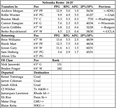 What Fred Hoiberg has done with Nebraska is as amazing as it was predictable. That’s not to diminish the feat, but speaks to Hoiberg’s outstanding reputation as a coach, as most believed with time he would elevate this Nebraska program from the laughing stock of the Big Ten to a competitive team. Year 5 was the culmination of progress year over year, as he got the Huskers to the tourney for just the 2nd time since 1998. He welcomes back 2 starters from last year’s group in Williams and Gary after losing Mast to injury for the season, and has brought in a slew of transfers to fill the gaps left behind by those who left. The most notable hole is fan favorite Keisei Tominaga, who electrified the fan base, and frankly any fan of college hoops, and whose vacancy will be difficult to replace. Transfer RollieWorster figures to handle the duties at the 1 spot, with a near 10/5/5 year with Utah last year he should come right in and produce. The final starting spot will be up for grabs, with ConnorEssegian and GavinGriffiths competing for the 2/3 spot alongside Worster and Williams. They are all different guys, with Essegian mostly just a spot up shooter, I think he serves more of a backup role as Griffiths showed flashes last year for Rutgers and has tremendous upside with his length. Transfers Morgan and Meah should have a role off the bench behind Bayuktuncel and Williams inside. With Ulis joining the backcourt as well they have a strong group to try and follow up and improve on last year’s success. Ultimately, it’s not the most eye popping talent wise, but Hoiberg has consistently proven he can maximize talent, so I have faith they will be once again in the mix.