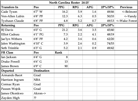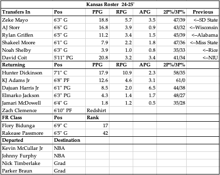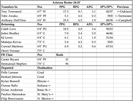 I’m not going to doubt Hurley like I did last year, he has firmly established himself as one of if not the premier coach in the country. Even though they lost 4 starters the talent on the roster is still there, and with his schematic ability you know they’ll be in a good place to succeed. The addition of Mahaney strengthens the backcourt, but there still is quite a bit of production to replace with both Spencer and Newton gone. I’m not sure Diarra is ready to jump up and be a double digit scorer, but McNeeley offers that with his shooting ability and Ball was a top-50 recruit that has that ability. I have two main concerns that kept them in the lower half of the top-10, who playmakes in the halfcourt and how they defend the paint without Clingan. Johnson and Reed and both long, but they blocked shots at half the rate Clingan did, and they lost some athleticism on the perimeter with Mahaney and McNeeley coming in. I wonder how far that top-5 defense will fall without the big man and without guys like Castle, Newton and Spencer wreaking havoc on the perimeter. What I don’t doubt is that with shooters like Karaban, Mahaney and McNeeley and Hurley’s mind for halfcourt offense they will be just fine on that end. Just monitor early how well they are defending, as that looks like the area, if any, they could take a decent sized step back. They should still be up at the top of the Conference, and with this recent history I expect them to enter March with a chance at another run and we hear the words 3-peat 9 billion times on CBS.