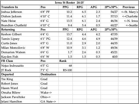 It took Greg McDermott 11 seasons to get out of the 1st weekend of the dance here at Creighton but he’s now done so in 3 of the last 4 seasons and has this program rolling. They haven’t been winning the regular season conference title but they have been right up there as one of the best teams year over year in this conference. This year should be no different, even with stars Trey Alexander and Baylor Scheierman gone, the return of big man RyanKalkbrenner for yet another season means they’re primed for another great year. PG StevenAshworth is also back to run the show and to replace the scoring wings that left McDermott headed to the transfer portal, landing PopIsaacs and JamiyaNeal. Both of these guys were good scoring options at their previous stops but were rather inefficient as shooters, especially Isaacs who shot just 35% overall from the field. Hopefully with the added talent around them the shooting % will rise, or else Creighton as a team is going to take a major step back as those are all they really have in terms of replacing Alexander and Scheierman. FR guard LarryJohnson is the other option, but he’s pretty raw offensively outside of his highlight reel dunking ability, but that athleticism of course gives him high potential to develop into a dangerous player. The other FR that could have an immediate role is JacksonMcAndrew, who profiles as a stretch 4 that would fit well next to Kalkbrenner. He probably needs to develop physically to not get pushed around, but the options at the 4 are MasonMiller, JasenGreen or IsaacTraudt, who haven’t proven to be super productive so the opportunity to play is there. Overall there’s still top-15 talent on this roster, but they have to prove it more this year with the transfers vs the returning talent they had last year. It may take time to click, but with Kalkbrenner inside and the backcourt of Ashworth/Isaacs/Neal it’s obvious why expectations remain high despite the losses.