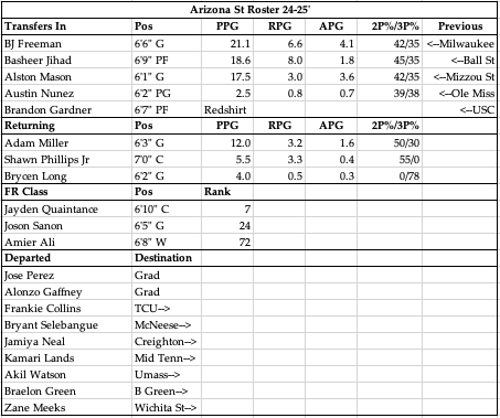My obvious worry is the weaknesses of this team a year ago are only going to be accentuated, as they are just going to really struggle to defend the paint and rebound. That’s not a good formula, especially for a group that shot just 33% from 3, good for 204th in the nation a year ago. I think they have a strong backcourt, but the inefficiency, just 85th last year, and the inability to gain extra possessions via offensive rebounds is just a bad pairing for a team that also isn’t going to defend at a high level. Maybe they climb a spot or two by season’s end, but truly I just don’t see how you make it in this league without some sort of inside presence to help you out. How are they going to guard the bigs around this league? It’s just not going to happen, and without a top-10 or so offense you just are going to be reeling all Conference season long. That’s my prediction, even with them being a pesky team again it’s just not going to be enough to make up for their deficiencies inside. I do believe in Rhoades as a coach, but you have to have the horses and he just doesn’t.