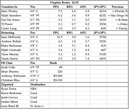 Kyle Neptune turned in another disappointing season as the successor to Jay Wright after he lead the Wildcats to 17 out of 18 tourney’s before retiring. Obviously, the pressure on Neptune to get this train back on the tracks is as high as it’ll be, and I would think that another missed tourney gets him canned. So, what does he have to work with heading into a pivotal season? It’s uninspiring to say the least. The good news is big man EricDixon is back, but outside of him it’s just JordanLongino back with significant experience. So after last year’s attempt to load up in the transfer portal with talented guys like Burton/Bamba/Hart and having more returning talent and it blowing up, he now has to try and portal his way to success again. He did pick up a trio of guards who should be able to come in and contribute, with Brooks/Poplar/Perkins all averaging 13+ ppg and all shooting it well from 3. Pairing those 3 with Longino you formulate a solid backcourt, but by no means star studded. KrisParker at the wing is an interesting prospect after redshirting at Alabama he’ll try and get time at the 3/4 and he’s a very good athlete. The other factor there will be FR MatthewHodge who has a little Sam Dekker in him and certainly is built physically to come in and contribute. The Fresno St transfer Boakye will fight to backup Dixon, but he’ll have strong competition with FR JosiahMoseley who has a lot of potential. He’s built like an undersized bruiser in the Collin Murray-Boyles mold but has guard skills that make him a potential stretch 4 man that can also punish smaller defenders on the block. There is some legitimate potential here on the roster but most of the roster outside of Dixon and Poplar have a lot to prove at this level.