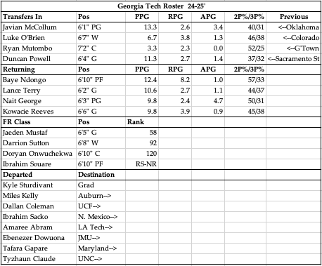 Mike White enters year 3 in a difficult rebuild, but has some positive momentum when you start to dig deep. While they went just 6-12 in SEC play in both years they took a major step forward analytically last year, jumping from 154th to 84th overall per Kenpom. They are getting better but the Conference is also getting better, and adding teams like Texas and Oklahoma only adds to the challenge. The fantastic news is White is bringing in his guys and getting them to stick around, as the 3 top-100 recruits he got last year are all back after contributing as FR. SilasDemary definitely had the biggest impact starting all but 1 game as a true FR, but both Cain and James started at times and played more and more down the stretch. That would have to give you some hope if you’re a Georgia basketball fan, of which there are probably only few. More hope comes via the transfer portal, with DakotaLaffew and De’ShayneMontgomery coming over from Mount St. Mary’s. They were the two best players on the team, and Montgomery was a FR, so that’s a lot of potential there especially with how they shot the ball. They did however struggle with TO’s contributing to MSM’s 342nd TO rate, so that’s concerning with an elevation in competition. He also brought in Vandy transfer TyrinLawrence to throw in the mix, which gives them a solid but not spectacular group of 5 guys to play the 1-3 spots. The frontcourt is definitely looking like the weak spot though, with two less than spectacular transfers coming in and then 2 FR. Abson and Godfrey are not long term solutions but will help give depth, and Godfrey could take a step forward with more of an opportunity after being buried on Clemson behind a solid group. The FR are exciting guys for the future, with 5-star AsaNewell leading the way as a slashing forward that uses his length and athleticism to be a menace on the boards and when he gets it in position he attacks the rim and with his bounce finishes strong above the rim. As a 5 man SomtoCyril is a great athlete with long arms that help him rebound and block shots at an elite level. He won’t add much offense but will finish strong if he gets setup within 10 feet. DylanJames is back after playing the 4 as a FR as well, so there’s 5 guys here looking for time at the 4-5 spots inside. That’s a group of 10 that is young, with just 2 Seniors and 6 FR/SO White will look to develop this core into something that can really compete a year from now.
