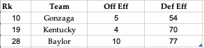 This is where we start getting a little unique and into the weeds, as we’ve had to find a bucket for those that fail to land in the top-25 on both ends but are elite on one end of the floor. Conversely they aren’t horrible on the other end, so they don’t drop down to our vulnerable categories. They’re just good enough on their weaker end of the floor that their elite abilities are able to carry them with some confidence out of the first weekend. I had to find the line of demarcation, where the weakness became tangible in the results. The teams ranking above 50 over and over again stood out with early exits, so that’s where it stuck after the numbers confirmed that the teams that live in this area perform much better than those in the “Matadors” or “Grinders” categories just by limiting that weakness. Obviously, the weakness is still indicating less reliability, with nearly half as many “Strong Enough” teams reaching the Elite 8 as “Elite” teams (35% vs 67%.).