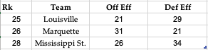 We have teams here who are going in opposite directions, with Louisville still charging forward, nearing the Solid archetype at this point. Then there’s Marquette, who has fallen all the way from “Great” to “Vanilla”, and while they still are in the top-30 they’re barely holding on to relevancy.