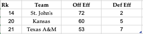 Same group as last week here as Kansas fell further into Grinder territory with A&M barely sliding in. St. John’s is a common Final 4 pick I’m starting to hear, but around here we will be avoiding taking them into the 2nd weekend much less all the way to San Antonio. Although it should be noted Pitino has lead bad offenses on deep runs before, making up part of that 1.6% and 4.9%.