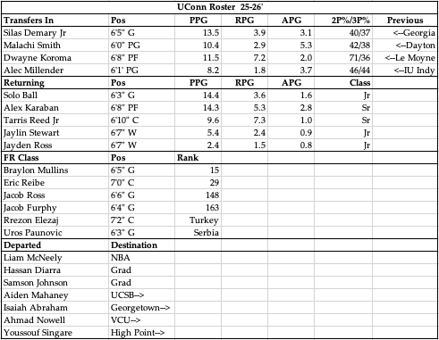 Coming off of back-to-back championships, last year was a trip back down to earth for Hurley and his UConn Huskies. It of course wasn’t a complete failure as they still made the dance and won a game as an 8 seed, but it was a reset as they tried to reload after losing nearly everyone from those 2 championship runs. The last remaining stalwart is Alex Karaban, who is back for his final season, and the young talent that Hurley has brought in is sticking around in large part, with guys like Ball, Stewart and Ross all back attempting to grow into larger roles. At the end of the day, we know this will be a well coached team and the transfer backcourt additions should improve what was a relative weak point last year with Mahaney disappointing and the group being the worst shooting team here since 2021. Depth was also an issue for them last year and boy did Hurley fix that as he has brought in a ton of talent, all of which just simply can’t play this year, but to have them able to compete for time and push each other in practice is a fantastic sign. It might be hard to hold on to them all, but to have amassed this much talent has to lead you to believe Hurley is going to find a group of 8-9 guys that can contend with anyone in the country given the proven commodities he has at his disposal. I have no idea how the rotation will sort out, aside from Ball and Karaban, but it’s an embarrassment of riches for a HC that has built enough trust to believe this is going to be one of the best teams in the country, not just the Big East.