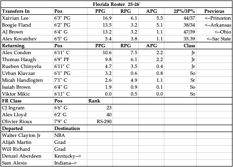 The defending champs have reloaded around a strong group of returners from last year’s group, led again by Todd Golden who has proven he was the exact right hire, bringing the Gators back to their championship caliber they had under Billy Donovan nearly 20 years ago. This year’s team will feature many familiar faces, especially in the froncourt as the entire 4 man rotation at the 4/5 spots are back. The backcourt is an entirely different situation though, as all 3 starters are gone and Aberdeen, the first guy off the bench, is also gone. That turns our attention to the portal, as Golden brought in 3 dynamite guards to replace what was lost, with Boogie Fland, Xaivian Lee and AJ Brown all poised to play major roles in this backcourt rotation. Freshmen CJ Ingram and Alex Lloyd will also compete for minutes, giving them 5 newcomers all looking to start. Klavzar and Brown coming back will have a chance as well, but we didn’t seem much of Brown and Klavzar was mostly just a catch a shoot option. I would expect the transfers and Ingram to dominate the minutes, and I think it’s a talented enough group to pair with this dominant frontcourt to make the Gators a threat to go back-to-back. It is all going to come down to how the guards defend, as guys like Richard and Martin were menaces on D for a team that went from 94th to 6th on D from 2023 to 2024. That was the difference for this program, and if they can continue that dominant effort on that end they will continue to be a force. My prediction is they take a small step back on D, but that still leaves an elite team offensively that plays solid D, good enough to win the SEC and make a deep run in March.