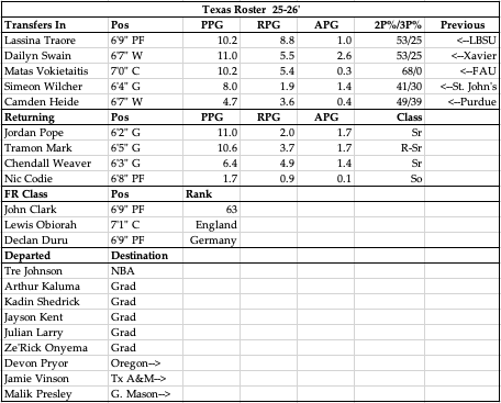 Well the Rodney Terry experiment has come to its inevitable conclusion as he got worse YOY in each of his 3 full seasons after taking over for Chris Beard. In comes a proven vet in Sean Miller who has not only retained some holdovers from last year, a tough thing to do in today’s environment, but also brought in some very nice pieces to fit around them. The trio of Pope/Mark/Weaver give them stability in the backcourt, and you can see based on who was brought in Miller is comfortable with those guys as he focused mostly on the 3-5 positions. We know his play style is a fast paced game with a wide open offense, as we’ve seen it at both Arizona and Xavier. He brought in guys like Cam Heide who is athletic and can really shoot it, but also guys like Wilcher and Swain who prefer to get out and run and attack downhill from the wing spot. Inside the german transfer Duru should come right in and have a role at the 4 spot with mid-major transfers like Traore and Vokietaitis looking to play the 4/5 spot as well. It’s much more of a question mark what you’ll get from that group, and that’s the hesitation as rebounding and protecting the paint could be a major concern. I don’t doubt they’ll be able to score, but much like Miller’s prior stops at Xavier and Arizona, the defensive end will tell the story in terms of how much success they have. They seem like a borderline top-25 team that should make the tourney, but again, if they can’t defend or rebound they could fall short of that. I’m betting on Miller and the guards, but I’m not super confident.