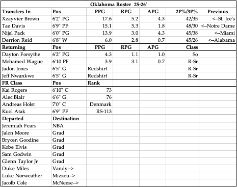 Porter Moser finally had a breakthrough of sorts last year with the Sooners as he finally got them to the dance in year 4. Unfortunately for him almost that entire team is gone, headlined by Jeremiah Fears heading to the NBA early. It’s going to be tough sledding for him but there is a tiny glimmer of hope considering the top end talent that he got in the portal. All 4 of these transfers should start, with the 5th starter up in the air. That takes you to the guys beyond that top 4, which is a giant question mark with returning guys that haven’t proven production at this level, coming from mid-major schools, JUCO, Denmark and of course high school. At the end of the day, I think the transfers keep the ship afloat but it is impossible to predict what kind of help those guys are going to have around them, much less how they gel and play together. Individually they are very good college basketball players, but how they come together and how they’re supported is a complete unknown and why I am keeping them down here. They are certainly not without hope to get back to the tourney, which is the crazy thing about the SEC as there are now 14 teams who legitimately enter the season with hopes to get to the tourney. I don’t think the Sooners will be one of them, but if they’re fighting on the bubble come February I wouldn’t be surprised by any means.